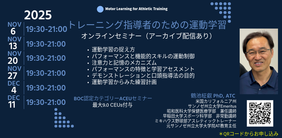 「トレーニング指導者のための運動学習オンラインセミナー」6回シリーズです。Zoomにて開催させていただきます。